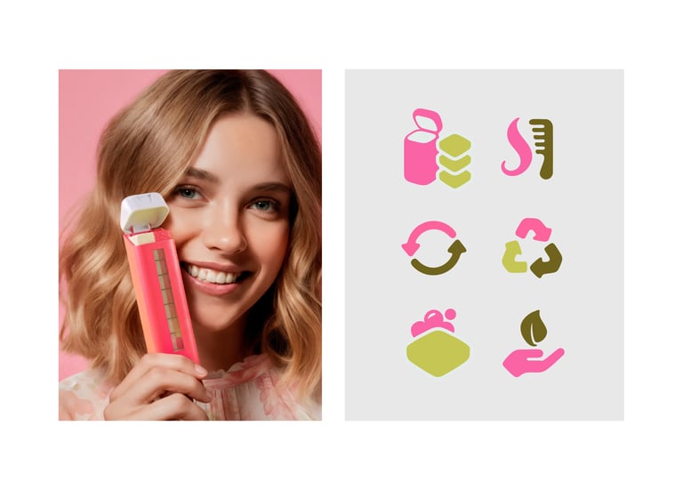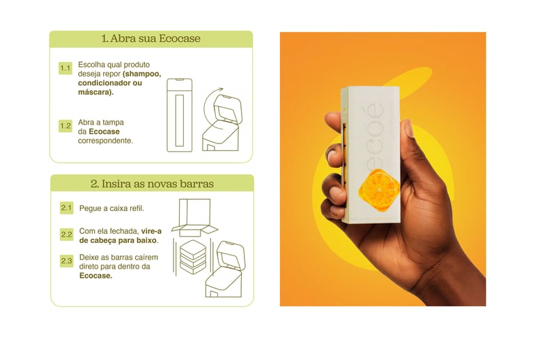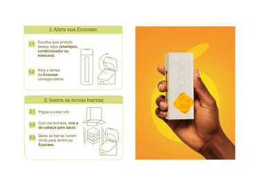 Com um design delicado, mas firme em seus posicionamentos, a identidade visual da Ecoé traduz leveza, natureza e contemporaneidade. Suas cores suaves, tipografia charmosa e ilustrações botânicas reforçam a conexão com o meio ambiente, inspirando mulheres modernas a se reconectarem com a natureza de uma forma prática e sustentável. Além disso, a Ecoé se destaca pela sua abordagem inovadora no cuidado capilar, buscando sempre soluções que combinam funcionalidade e consciência ambiental. Seu diferencial está na criação de um sistema de refil prático, que evita desperdícios e garante o uso contínuo dos produtos sem descarte excessivo. O desenvolvimento de suas embalagens e a integração com o ciclo sustentável de consumo reafirmam o compromisso da marca com a preservação do planeta.