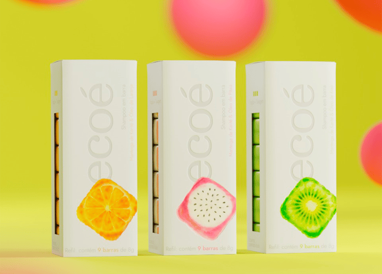 A Ecoé é uma marca que nasce da união entre design, sustentabilidade e natureza, oferecendo biocosméticos sustentáveis para o cuidado capilar. Seu propósito é transformar a rotina de cuidados capilares em um gesto simples e prático de beleza que respeita o meio ambiente, ao mesmo tempo em que proporciona resultados profissionais e eficientes. A linha Ecoé é composta por produtos em barras fracionadas, como shampoo, condicionador e máscara capilar, que foram desenvolvidos com a intenção de otimizar o uso do produto, evitando desperdícios e promovendo uma experiência única. O design das embalagens também foi pensado para facilitar a aplicação e o aproveitamento máximo de cada produto.